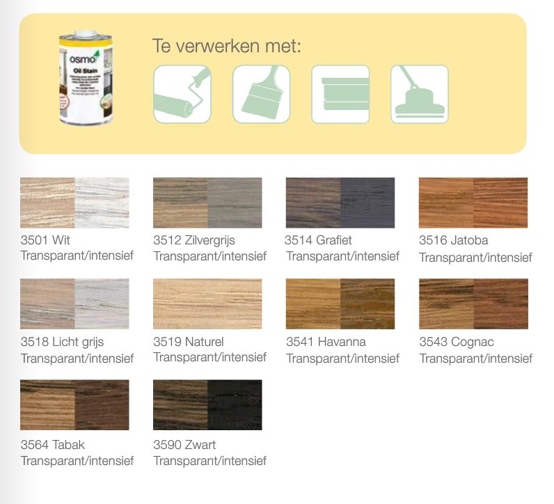Les options de couleur pour la teinture à l'huile Osmo sont :